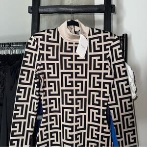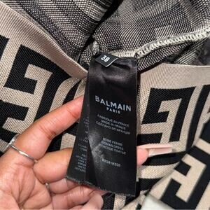 Balmain Ivory & Noir Monogram Shoulder Pad Knit Mini Dress