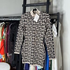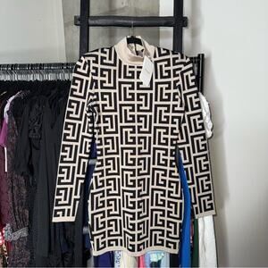 Balmain Ivory & Noir Monogram Shoulder Pad Knit Mini Dress