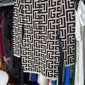 parisian luxury, designer statement, power shoulders, boss energy, high fashion glamour, runway ready, structured silhouette, iconic monogram, luxe knit bodycon, evening elegance, upscale soirée, celebrity style, red carpet vibes, fashion week aesthetic, commanding presence, sharp tailoring, statement dress, european chic, luxury nightlife, bold graphic print, modern couture, fashion collector, premium knitwear, elevated boldness, opulent minimalism, high-impact style