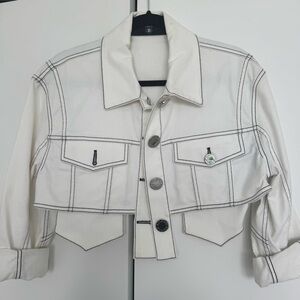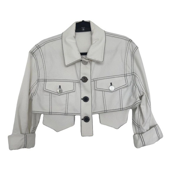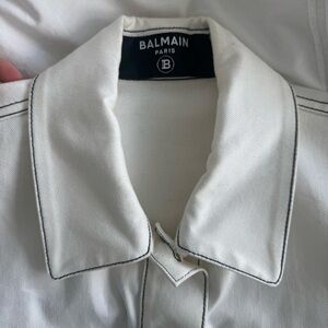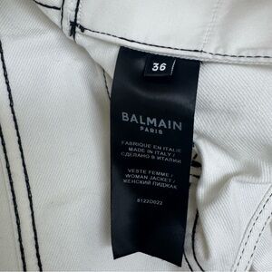 This stunning Balmain white denim jacket is a timeless statement piece, crafted with the brand’s signature structured fit and luxe detailing. Completely untouched and just sitting in my closet for too long—it’s time for it to find a new home! Perfect for elevating any outfit, from casual chic to high-fashion glam. Don’t miss out on this wardrobe essential!