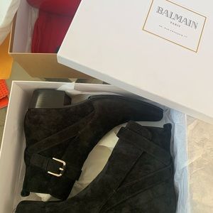 Balmain Jodhpur boots in black suede. The sole is also made in leather. The heel is 40cm. Beautiful boot, very elegant and fits like a glove. 100% authentic as pictures show. They were $1195 and are rare to find. Comes with dustbag as well.