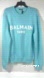 Balmain Logo Merino Wool Blend Sweater Light Blue White XL NWT