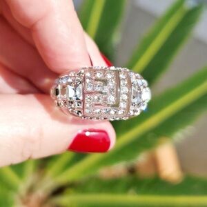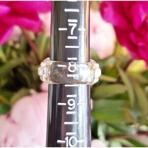 Authentic Balmain Lucite & Crystal Cocktail Ring Encrusted with glistening Swarovski Crystal embellishments throughout, this silver-tone ring by Balmain is crafted from acrylic glass for an opulent finish. The ring is brand new and a size 8. It comes with the duster and the box. Please observe all photos.