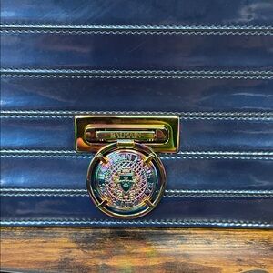 Balmain Metallic Blue Shoulder Bag with Chain Detail