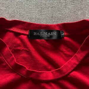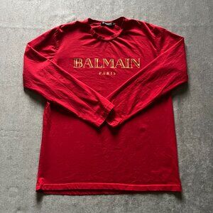Balmain Paris Long Sleeve Shirt Men Size Large Red Logo Fashion