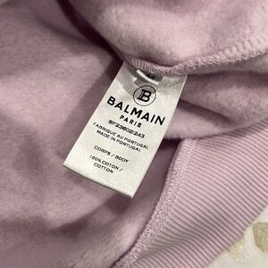 Experience the perfect blend of luxury and comfort with this Balmain crew neck sweater in a rich purple hue. Featuring the iconic Balmain Paris logo, this sweater is crafted for a relaxed fit with ribbed cuffs and hem, making it an ideal choice for casual elegance.