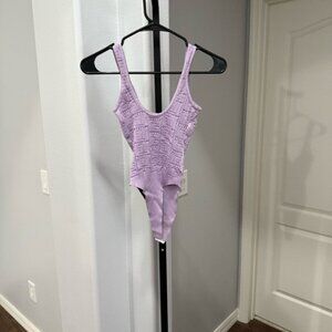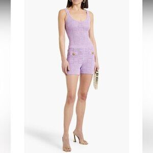 Balmain Purple Knit Pattern Bodysuit Size 34 Crochet Designer
