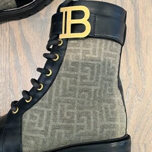 Balmain Ranger Romy Canvas Leather Combat Bootss