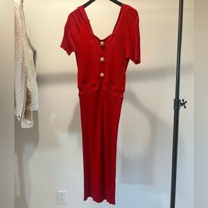 Balmain Red Ribbed Dress