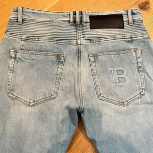 Balmain Slim Fit Biker Jeans in Faded Blue