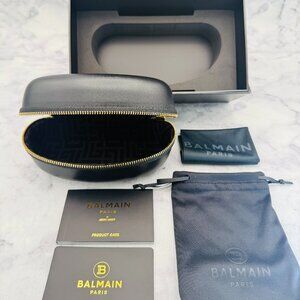 Balmain Sunglasses Case Set-Black Box, Gold Zip Oval Case, Drawstring Bag, Cloth