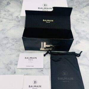 Balmain Sunglasses Holder, Black Wide Hard Case, White Box, Soft Drawstring Bag