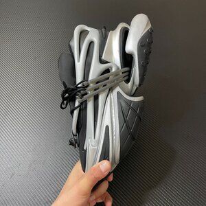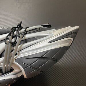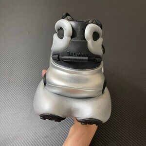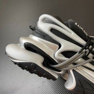 Balmain's BBold sneakers are given a futuristic update with a mixed-media design featuring cutouts, a segmented sole, and a lion head snap at the vamp.