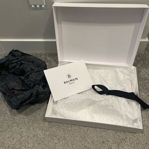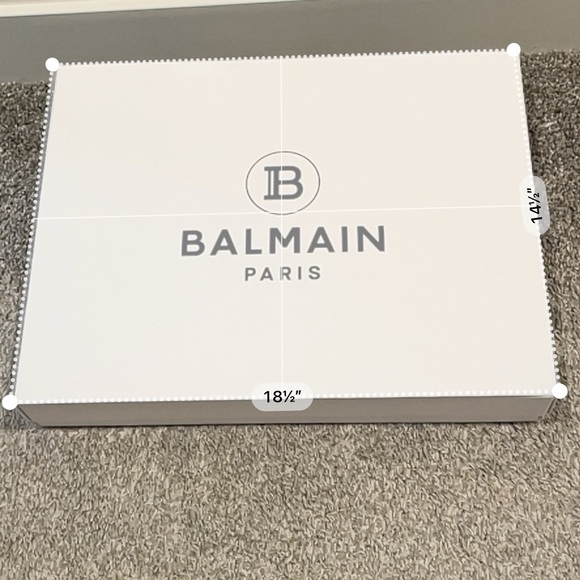 Elegant white box with Balmain Paris logo. Perfect for storage or gifting.