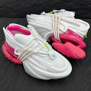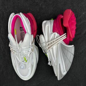 Balmain White With Pink Heels, Pointed-Toe Wavy Sneakers