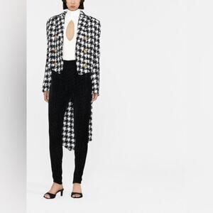 Balmain Womens Black Jacquard Monogram Velvet Skinny Leg Zipper Trousers 12 / 44