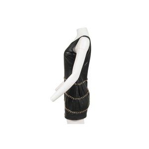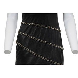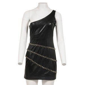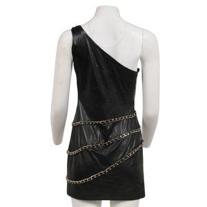 Balmain Womens Mini Dress US8 F40 Black Lamb Leather One Shoulder Wrap Chain y2k