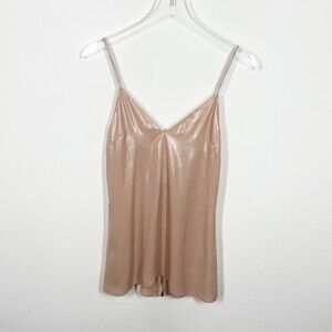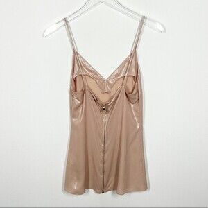 Balmain Women's Size 6 Iridescent Pink Exposed Gold Zipper Deep V-Neck Cami Top