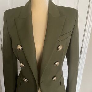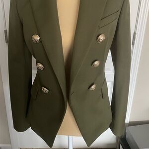 Balmain blazer in military green, size 38. Gently used in excellent condition.