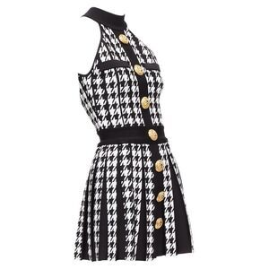 Delivery Duty Paid included – BALMAIN 2023 black white houndstooth gold lion button halter mini dress FR34 XSReference: AAWC/A00701Brand: BalmainDesigner: Olivier RousteingCollection: 2023Material: Viscose, PolyamideColor: Black, WhitePattern: HoundstoothClosure: ZipExtra Details: Black white houndstooth graphic. Decorative XL gold lion head buttons. Halter neck. Exposed zip back closure. Knitted. Pleated skirt.Estimated Retail Price: USD 2695Made in: FranceCONDITION:Condition: Excellent, this item was pre-owned and is in excellent condition. SIZINGDesigner size: FR34Size reference: US0 / UK6 / IT38 / FR34 / XXS-XSMEASUREMENTS: Chest: 37cm / 14.4"Waist: 27cm / 10.5"Hip: 42cm / 16.4"Length: 72cm / 28.1"Measurments: length: 720 mm