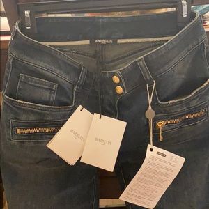 Brand New Authentic Balmain Jeans , Moto-style distressed low-rise skinny jeans size FR38, US 6 all tags are on, never worn.