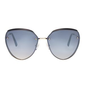 Butterfly frames, gold-tone and black semi-rims, etched detailing, saddle nose bridge, integrated nose pads. Logo lettering at contrast temples, mirrored lenses, covered tips, 100% UV protection. 60mm lens width, 15mm bridge width, 140mm temple length. Metal/Plastic. Made in France.