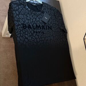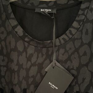 Chic Balmain tee with a subtle charcoal leopard pattern. Bold Balmain logo on the chest. New with tags, size xxl, fits like a XL. Authentic