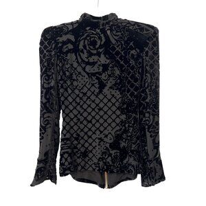 Balmain x H&M Velvet Burnout Top Size 4 Long Sleeve Black Elegant Fashion Runway