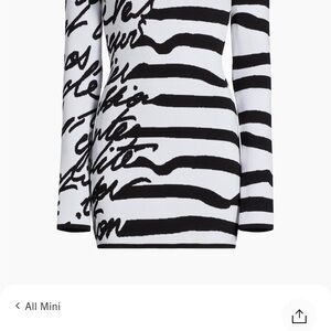 Elegant black and white striped dress with a chic script design. Perfect for any occasion.