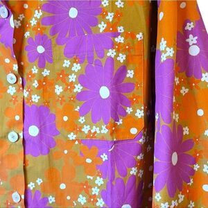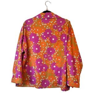 Balou Women's Marie Cotton Orange Vibrant Retro Floral Button Front Shirt Size S
