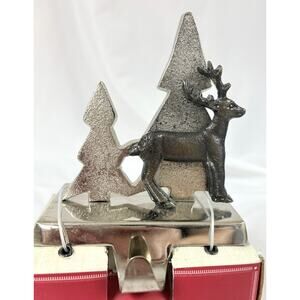 Balsam & Fir Christmas Holiday Stocking Holder Silver Tone Trees Bronze Deer