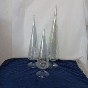 Balsam Hill Iridescent Glass Trees Glitter Set Of 3 Light Weight