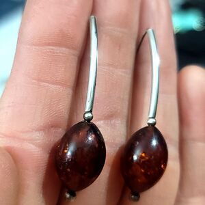 Baltic Amber Cherry Drop Sterling Silver Earrings