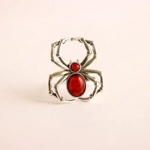 This Baltic amber spider ring brings a striking mix of craftsmanship and style. The cherry amber centerpiece glows with deep red tones, set within a finely detailed spider design crafted in 925 sterling silver. With its adjustable band, the spider ring offers both comfort and a secure fit, making it a unique accessory for those drawn to bold and symbolic designs. Perfect for gothic fashion, Halloween themes, or everyday expression, this amber spider ring carries an edge of mystery and individuality.