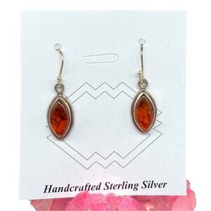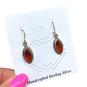 Baltic Amber Earrings Solid 925 Sterling Silver Dangle Drop Pierced Natural