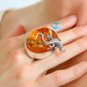 Baltic Amber Gecko Ring in 925 Sterling Silver - Handmade