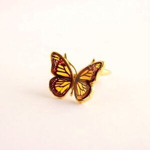 This Baltic amber gold butterfly ring captures the graceful beauty of a Monarch in motion. Crafted from 14k gold plated 925 sterling silver, it features a detailed laser-cut butterfly design with warm amber tones that bring the wings to life. The smooth band and adjustable size make this butterfly ring as comfortable as it is eye-catching, perfect for everyday wear or special occasions.