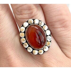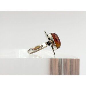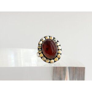 Baltic Amber Southwest Style Cabochon 925 Sterling Silver Vintage Ring - sz 7.25