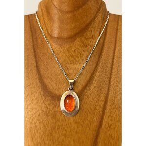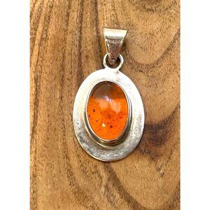 Baltic Amber Sterling Silver .925 Oval Pendant Handmade In Mexico