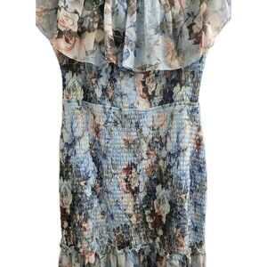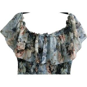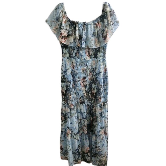 Baltic Born Amalfi Smocked Maxi Dress 1XL Blue Floral Off Shoulder Ruffle NWT