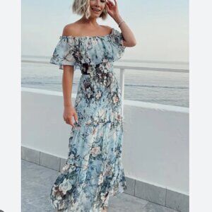 Baltic Born Amalfi Smocked Maxi Dress in Blue Floral Romantic Wedding Sz 2XL