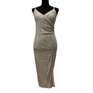 Baltic Born Annabelle Gold Sequin Strapless Slit Midi Dress - Size Medium NWT