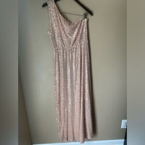 Baltic Born Astrea Sequin One Shoulder Maxi Dress Champagne Rose Color Size XL