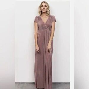 Baltic Born Athena Pleated Maxi Dress Womens Small Blush Rose Pink Gown Formal