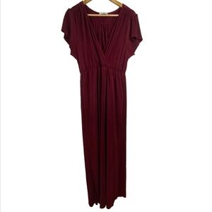 Baltic Born Athena Pleated Maxi Dress XXXL Burgundy Short Sleeve V Neck Wedding