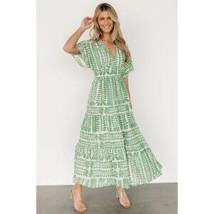 Baltic Born Austin Kimono Dress Midi Fit Flare Retro Green Print Large