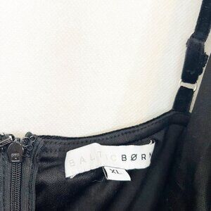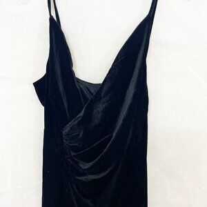 Baltic Born Black Velvet Ruched Maxi Dress V-Neck Slit Hem - Size XL