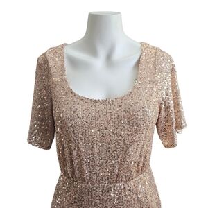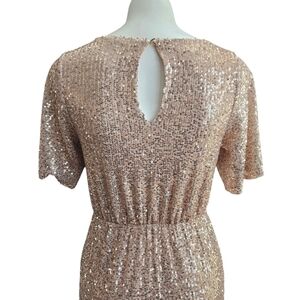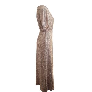 Baltic Born Womens Bridesmaid Sequined Rose Gold Side Slit Maxi Dress Sz Small