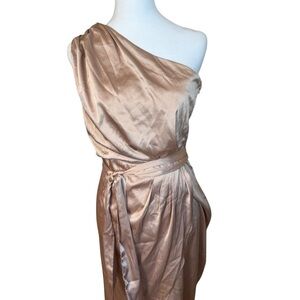 •Style Profile: Baltic Born Celia One-Shoulder Belted Satin Midi Dress Medium Wedding Guest NWT