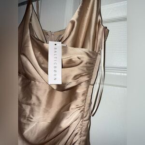 Baltic Born Champagne Silky Cowl Neck Ruched Slit Formal Holiday Dress XS NWT